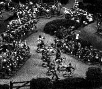 sind eine im deutschen Sprachraum noch relativ wenig verbreitete spezielle Form des Rollenspiels. Bei dieser Art von Spiel schlüpfen die SpielerInnen auch körperlich in die von ihnen dargestellten Charaktere. Dazu gehört eine entsprechende karnevalsartig anmutende Verkleidung, sog. Polsterwaffen, eine entsprechende Umgebung (etwa Waldlandschaft, Burg o.ä.). Sonst funktionieren sie ähnlich wie konventionelles Rollenspiel. Live-Rollenspiele sind, etwa wegen Unfällen, die nicht zuletzt aus der Identifikation mit der Rolle resultierten, in letzter Zeit öfter Gegenstand von Pressemeldungen gewesen.18 Das Bild zeigt eine als Orks o.ä. kostümierte Gruppe von englischen Live-RollenspielerInnen bei einem Treffen 1995.19