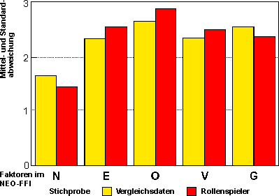 Tendenzielle Unterschiede finden sich bei den Skalen Neurotizismus (leicht geringer bei den Rollenspielern) und Offenheit für neue Erfahrungen (höher bei den Rollenspielern).